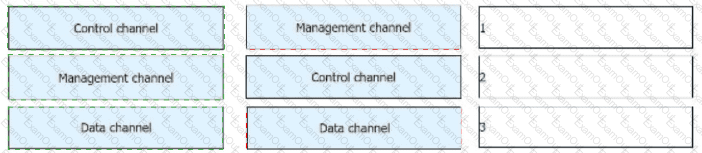 The Huawei SD-WAN solution has three types of channels. Drag the channel names to their corresponding callouts.