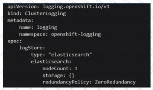 The given YAML configuration is for ClusterLogging in an OpenShift environment, which is used for centralized logging. The key part of the specification that determines the behavior of Elasticsearch is: