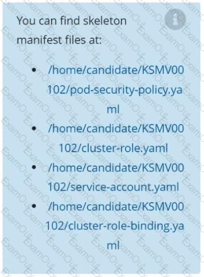 Finally, create a new ClusterRoleBinding named restrict-access-bind, which binds the newly created ClusterRole restrict-access-role to the newly created ServiceAccount psp-restrict-sa.