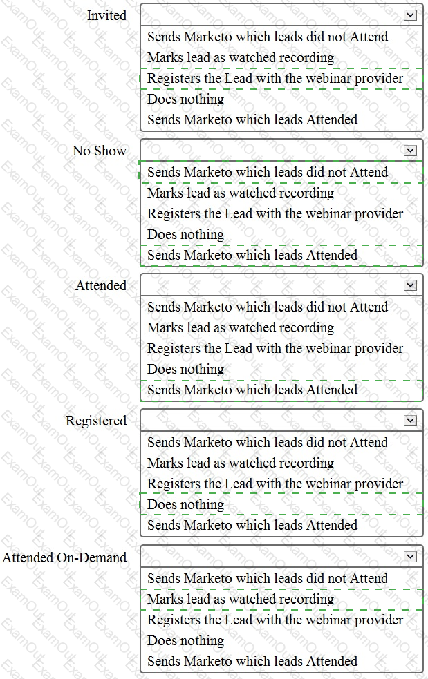 Match each Webinar Program Status with its effect on the webinar provider or Marketo.