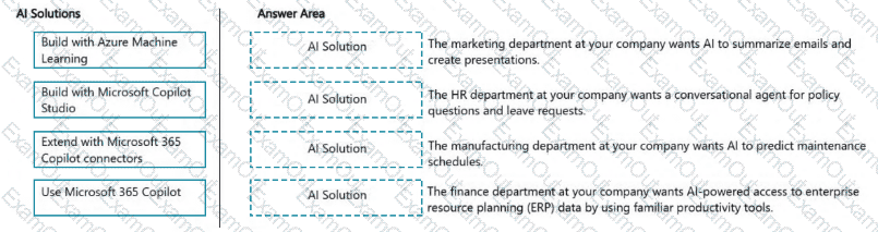 Match the business scenario to the appropriate AI solution design approach. Each solution may be used once, more than once, or not at all.