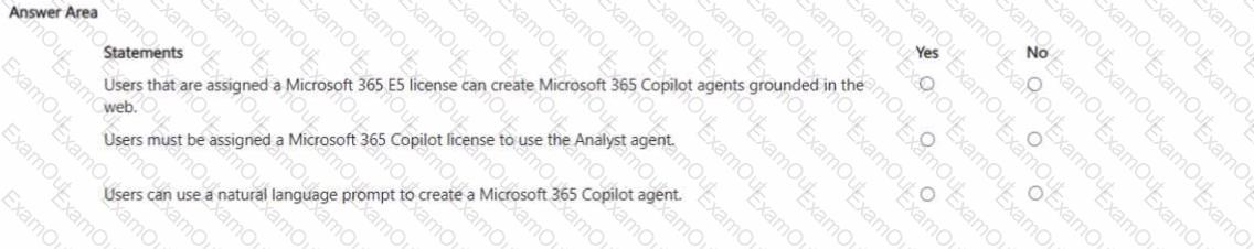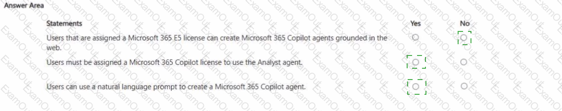 For each of the following statements, select Yes if the statement is true. Otherwise, select No. NOTE: Each correct selection is worth one point.