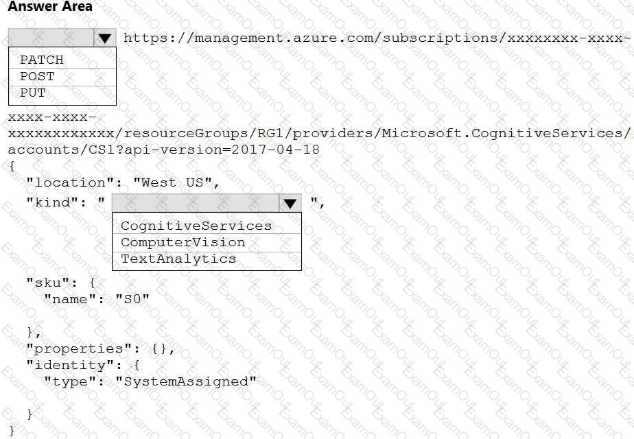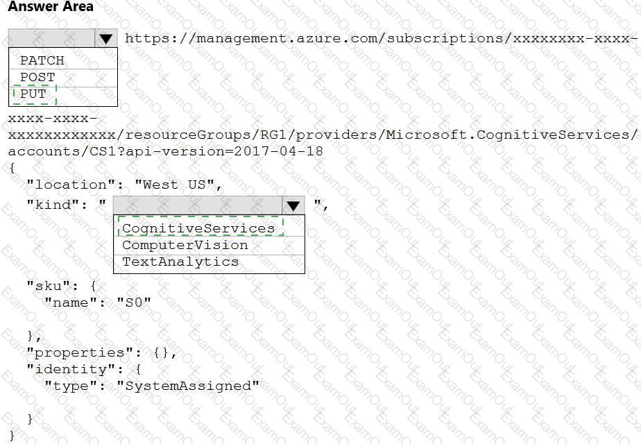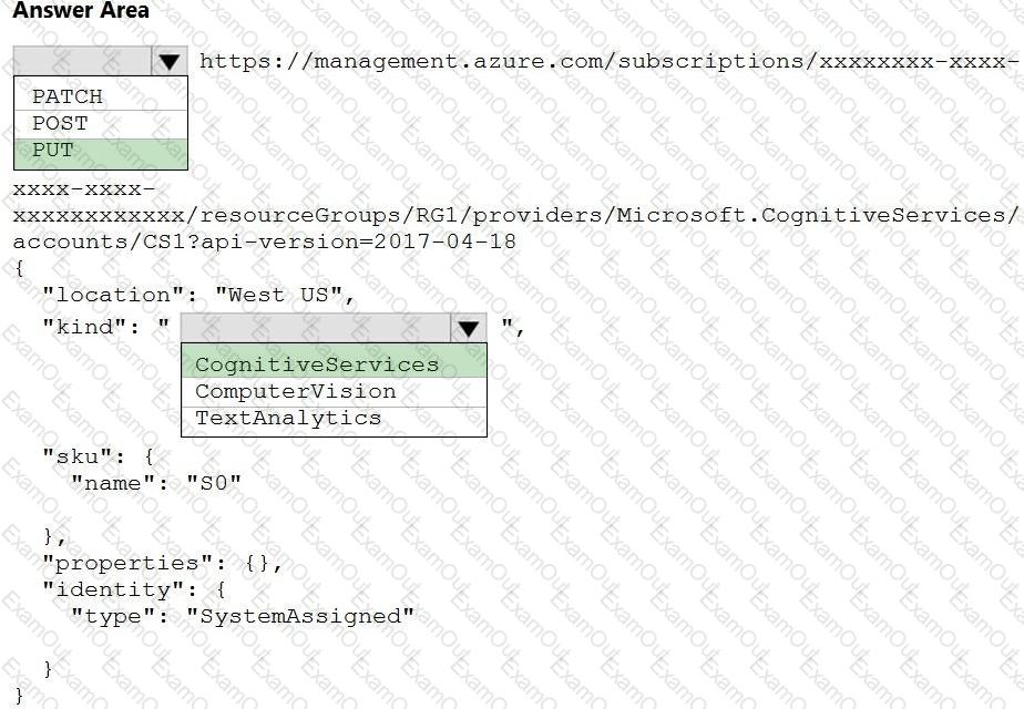 How should you complete the HTTP request to create the new resource? To answer, select the appropriate options in the answer area.