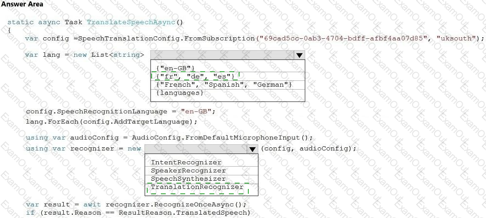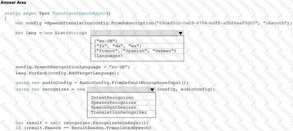 How should you complete the code? To answer, select the appropriate options in the answer area.