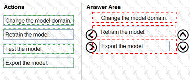 Which three actions should you perform in sequence? To answer, move the appropriate actions from the list of actions to the answer area and arrange them in the correct order.