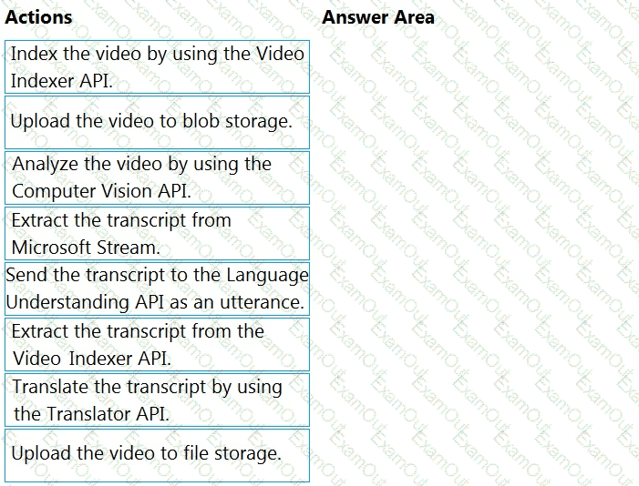 Which four actions should you perform in sequence? To answer, move the appropriate actions from the list of actions to the answer area and arrange them in the correct order. (Choose four.)
