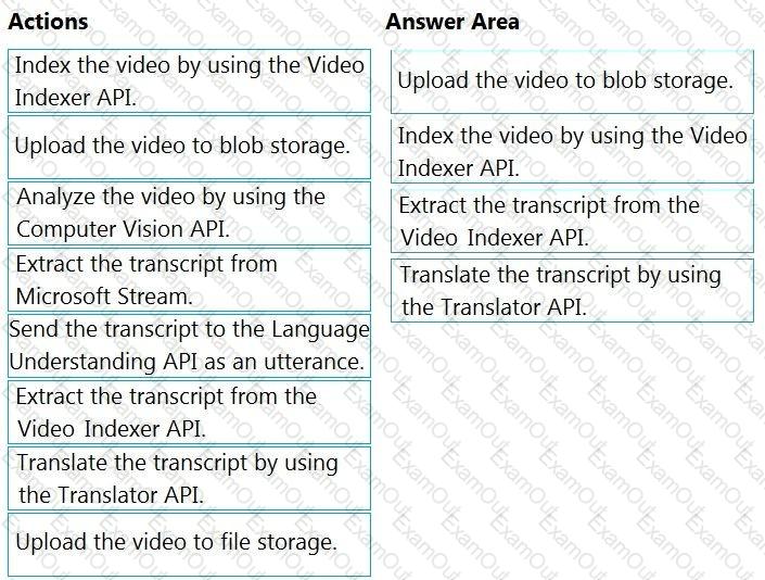 How should you complete the skillset design diagram? To answer, drag the appropriate services to the correct stages. Each service may be used once, more than once, or not at all. You may need to drag the split bar between panes or scroll to view content.