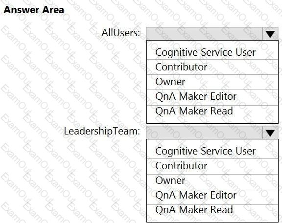 Which role should you assign to AllUsers and LeadershipTeam? To answer, select the appropriate options in the answer area.