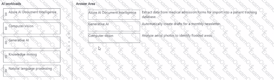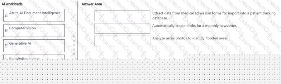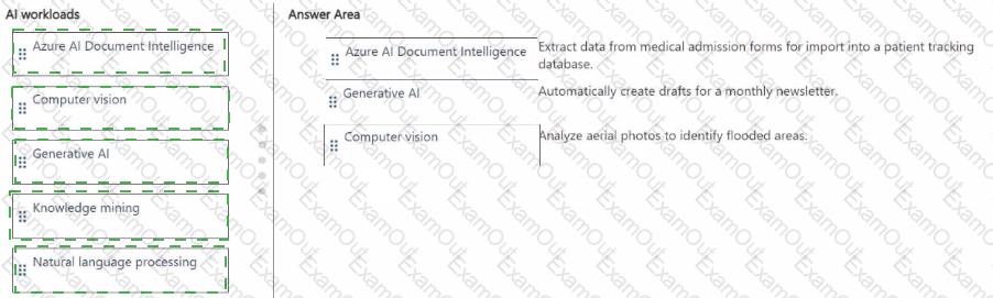To answer, drag the appropriate Ai workload from the column on the left to its task on the right. Each workload may be used once, more than once, or not at all.
