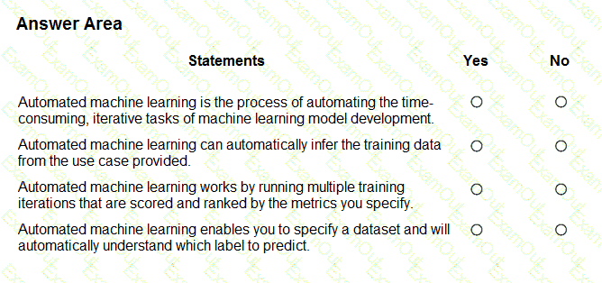 For each of the following statements, select Yes if the statement is true. Otherwise, select No.