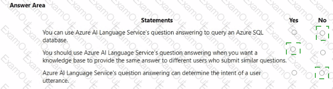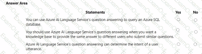 For each of the following statements, select Yes if the statement is true. Otherwise, select No.