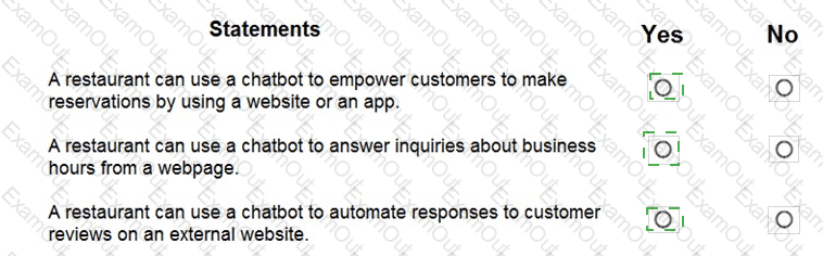 For each of the following statements, select Yes if the statement is true. Otherwise, select No.