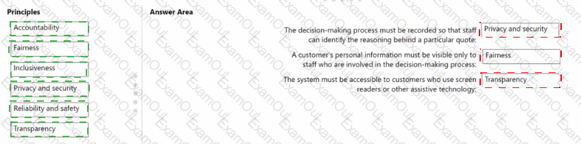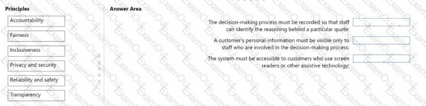 Match the Microsoft responsible Al principles to the appropriate requirements.