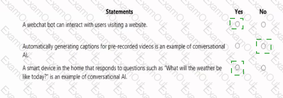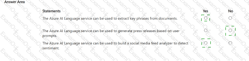 For each of the following statements, select Yes if the statement is true. Otherwise, select No.