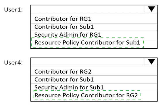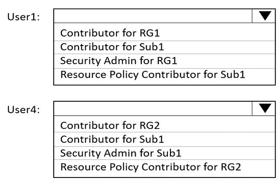 Which role should you assign to each user? To answer, select the appropriate options in the answer area.