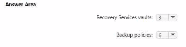 What is the minimum number of Recovery Services vaults and backup policies you should create? To answer, select the appropriate options in the answer area.