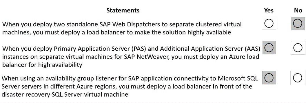 For each of the following statements, select Yes if the statement is true. Otherwise, select No.