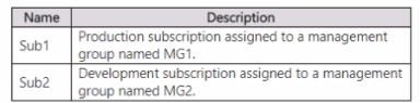 • Policy 1: Enforces resource tags to every resource in both subscriptions.