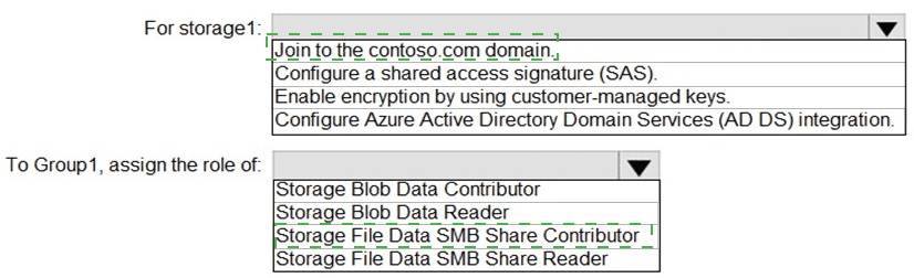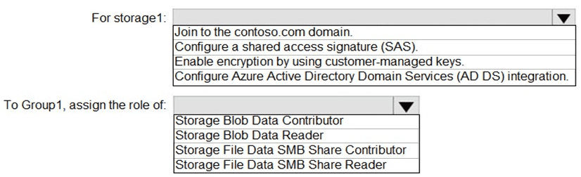You need to use FSLogix profile containers in storage1 to store user profiles for a group named Group1. The solution must use the principle of least privilege.