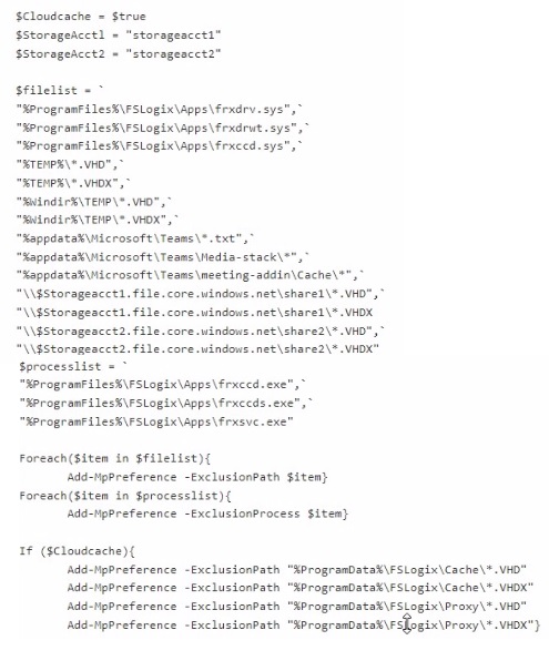 You plan to deploy Microsoft Defender Antivirus exclusions to the session hosts by using the following PowerShell script.