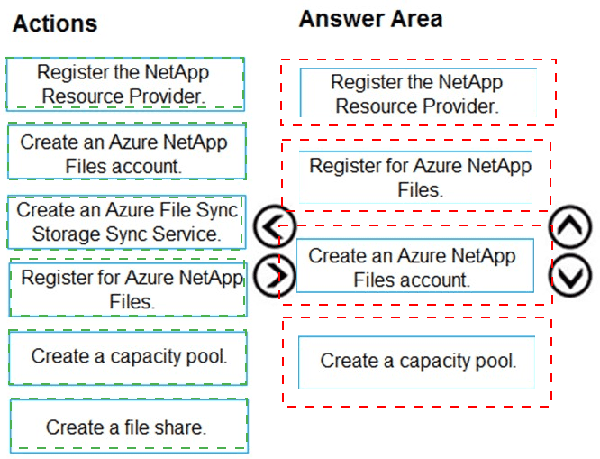 Which four actions should you perform in sequence? To answer, move the appropriate actions from the list of actions to the answer area and arrange them in the correct order.