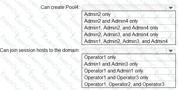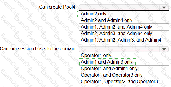 Which users can create Pool4, and which users can join session hosts to the domain? To answer, select the appropriate options in the answer area.
