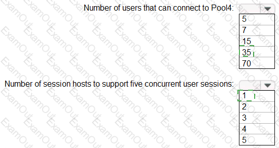 What will be the maximum number of users that can connect to Pool4, and how many session hosts are needed to support five concurrent user sessions? To answer, select the appropriate options in the answer area.