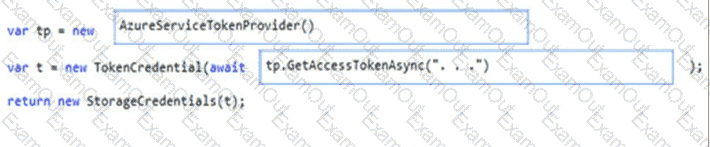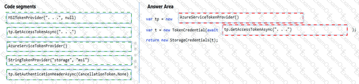 How should you complete the code? To answer, drag the appropriate code segments to the correct locations. Each code segment may be used once, more than once, or not at all. You may need to drag the split bar between panes or scroll to view content.
