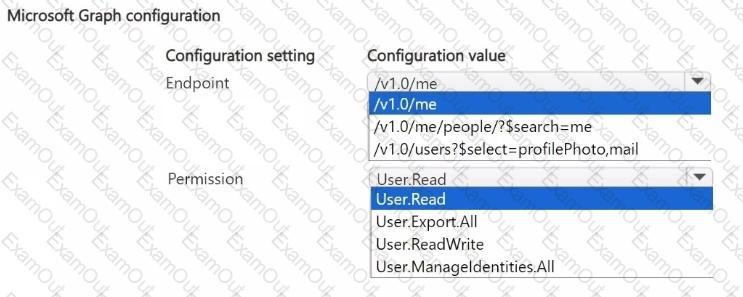 Which Microsoft Graph configuration should you use? To answer, select the appropriate options in the answer area.