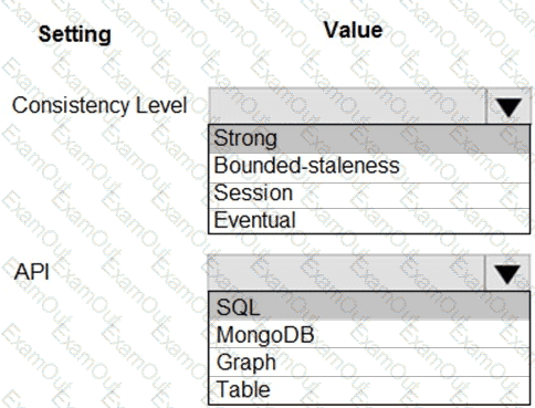 Which settings should you use? To answer, select the appropriate options in the answer area.