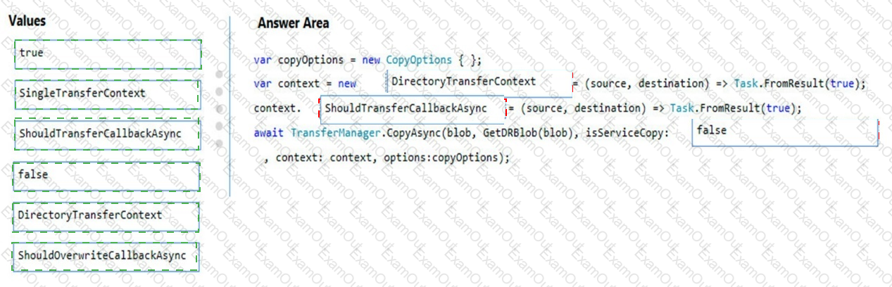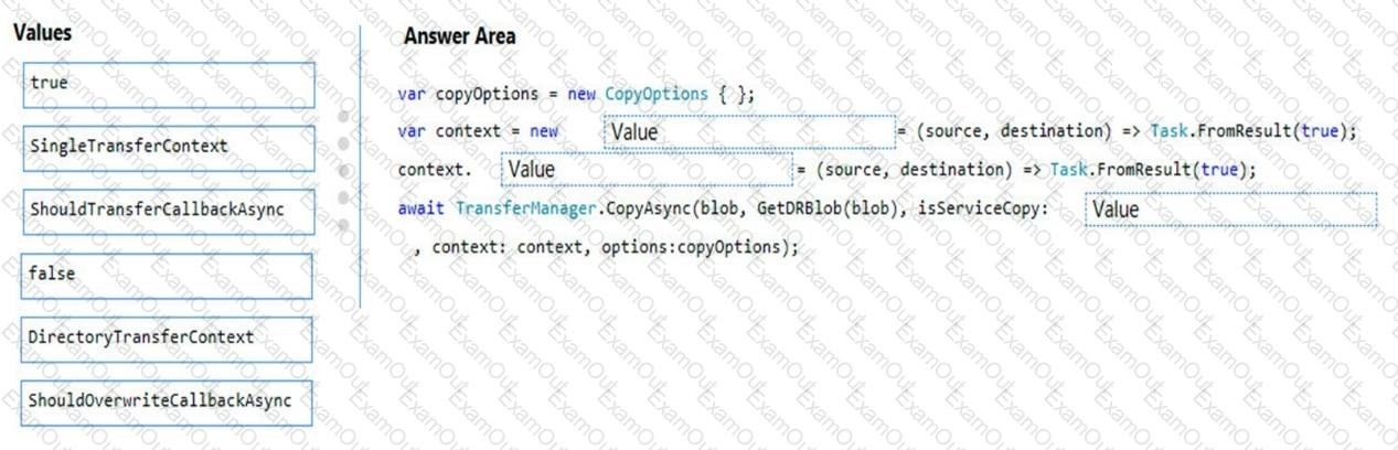 How should you complete the code? To answer, select the appropriate options in the answer area.