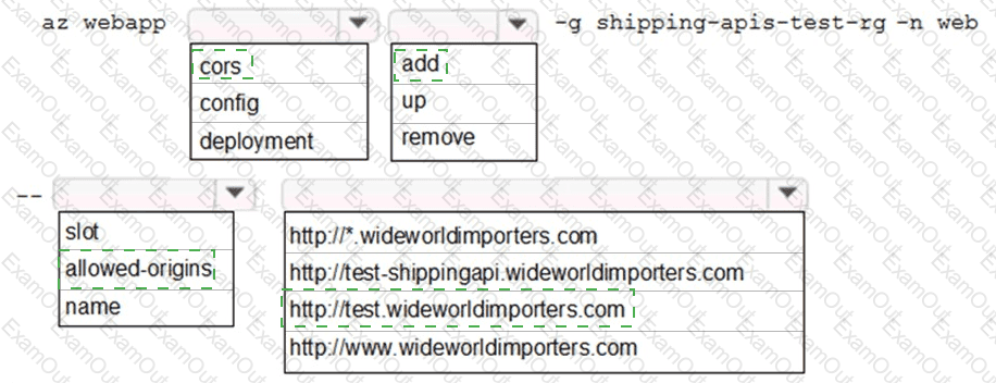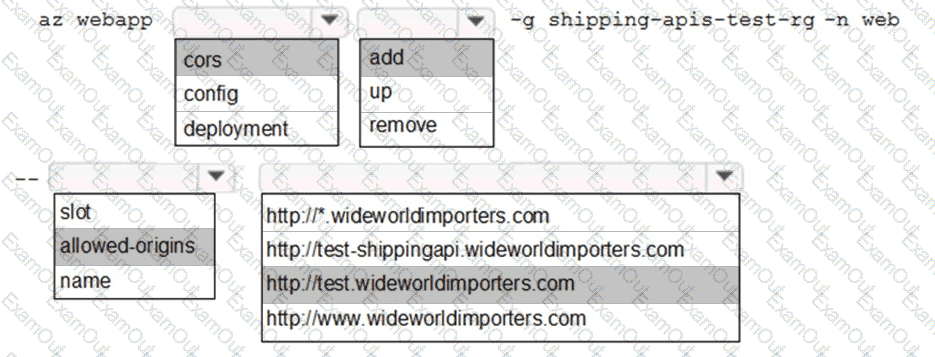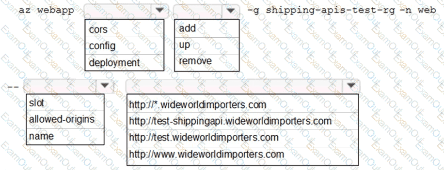 How should you complete the Azure CLI command? To answer, select the appropriate options in the answer area.