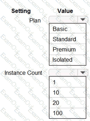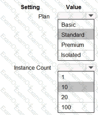 Which values should you use? To answer, select the appropriate options in the answer area.