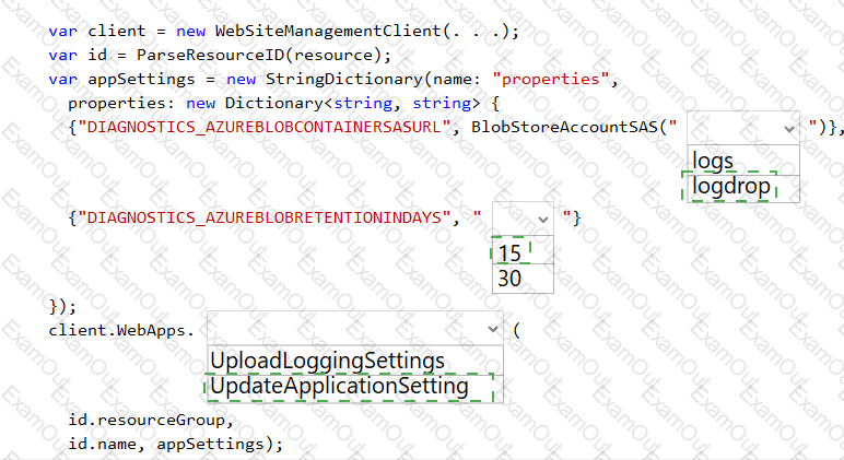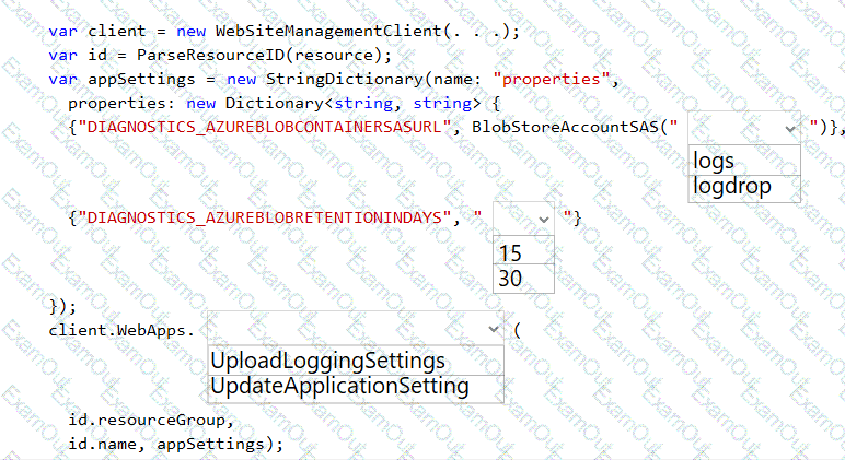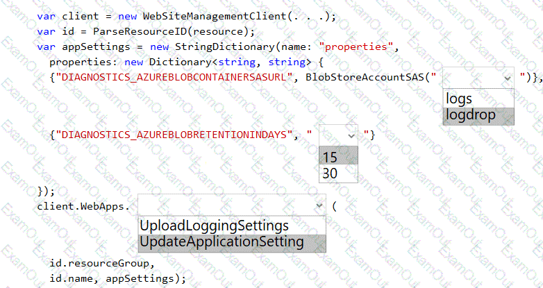 How should you complete the code? To answer, select the appropriate options in the answer area.