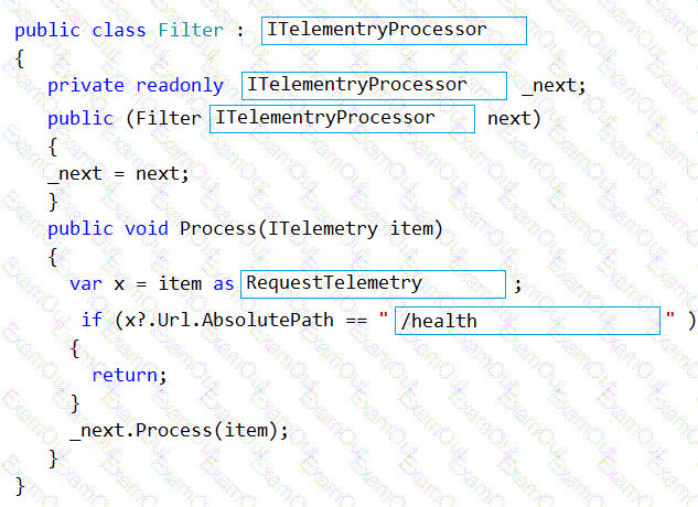 How should you complete the Filter class? To answer, drag the appropriate code segments to the correct locations. Each code segment may be used once, more than once, or not at all. You may need to drag the split bar between panes or scroll to view content.