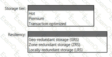 You plan to create an Azure Storage account that will host file shares. The shares will be accessed from on-premises applications that are transaction-intensive.