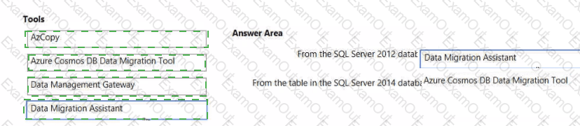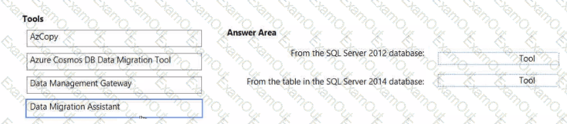 What should you recommend using to migrate the data? To answer, drag the appropriate tools to the correct data sources-Each tool may be used once, more than once, or not at all. You may need to drag the split bar between panes or scroll to view content.