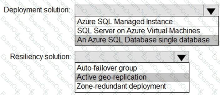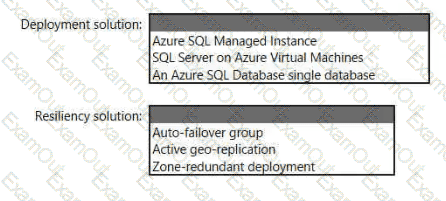 You need to recommend a deployment and resiliency solution that meets the following requirements: