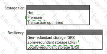 You need to recommend a solution to minimize latency when accessing the file shares. The solution must provide the highest-level of resiliency for the selected storage tier.