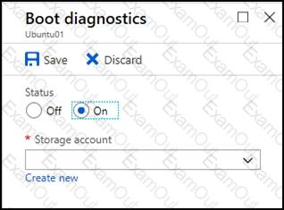 You need to create and configure an Azure Storage account named az400lod11566895stor in a resource group named RG1lod11566895 to store the boot diagnostics for avirtual machine named VM1.