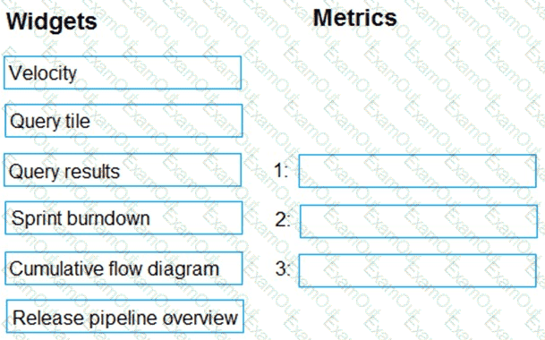 Which widget should you use for each metric? To answer, drag the appropriate widgets to the correct metrics. Each widgetmay be used once, more than once, or not at all. You may need to drag the split bar between panes or scroll to view content.