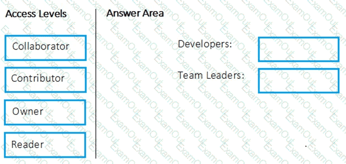 Which package feed access levels should be assigned to the Developers and Team Leaders groups for the investment planning applications suite? To answer, drag the appropriate access levels to the correct groups. Each access level may be used once, more than once, or not at all. You may need to drag the split bar between panes or scroll to view content.