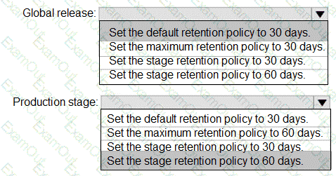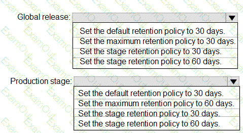 How should youconfigure the release retention policy for the investment planning applications suite? To answer, select the appropriate options in the answer area.