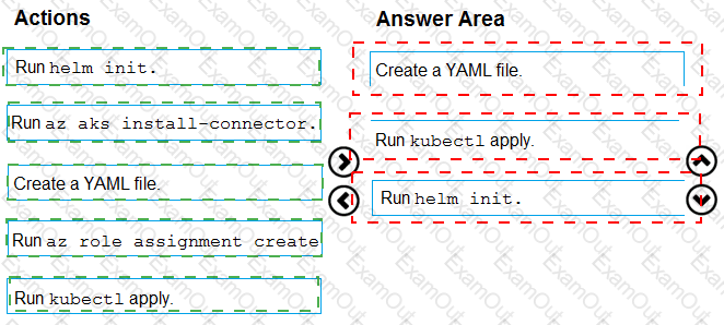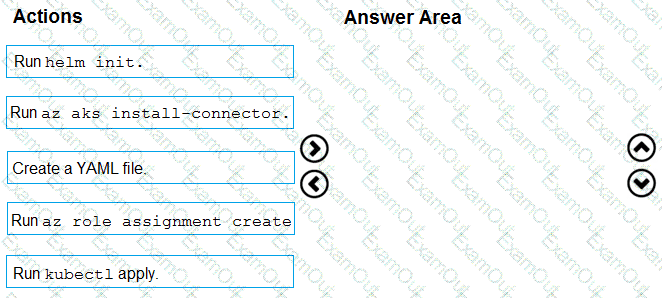 Youneed to conjure Azure Container Instances as a hosted environment for running me containers in AKS. Which three actions should you perform m sequence?