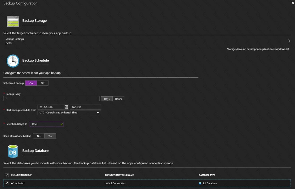Your company plans to implement a new compliance strategy that will require all Azure web apps to be backed up every five hours.