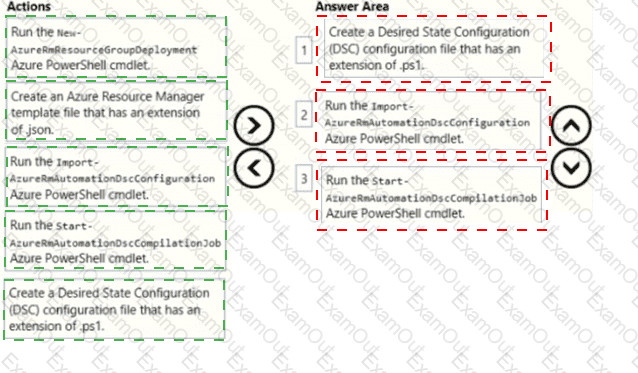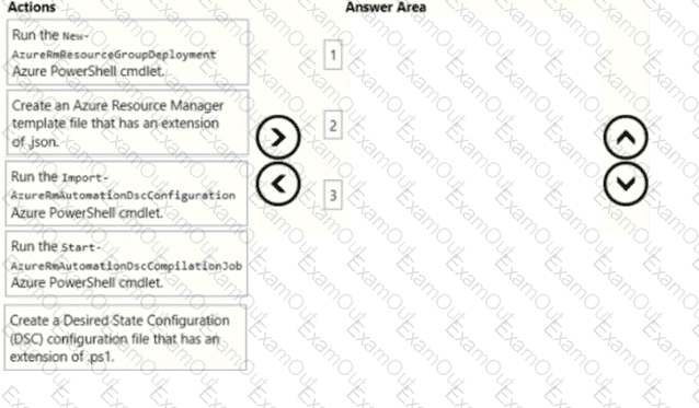 Whichthree actions should you perform in sequence? To answer, move the appropriate actions from the list of actions to the answer area and arrange them m the correct order.