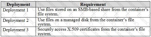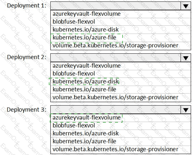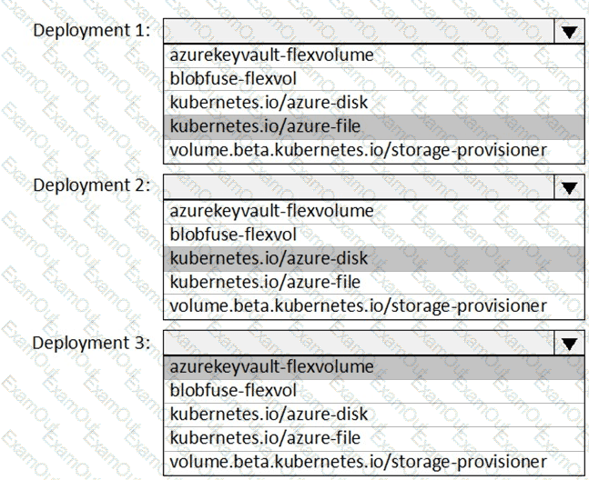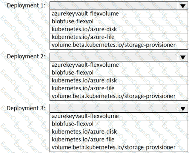 You need to create deployment files for an Azure Kubernetes Service (AKS) cluster. The deployments must meet the provisioning storage requirements shown in the following table.