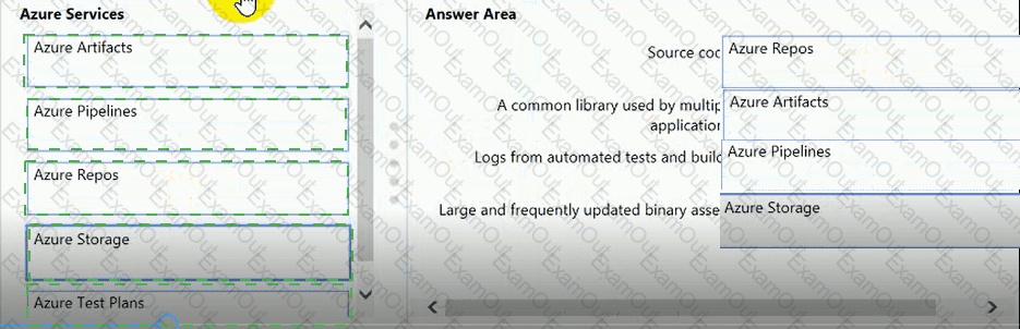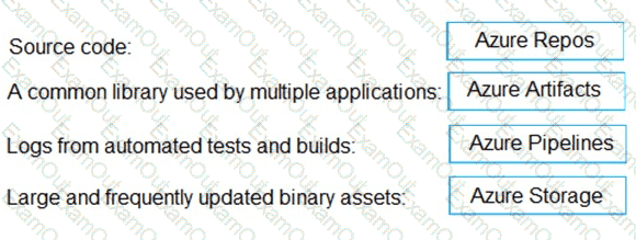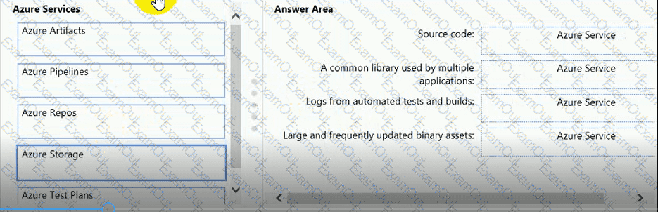 Where should you store each asset? To answer, drag the appropriate Azure services to the correct assets. Each service may be used once. You may need to drag the split bar between panes or scroll to view content.