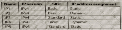 You have an Azure subscription that contains the public IP addresses shown in the following table.