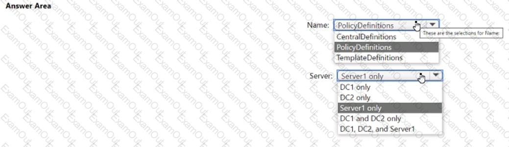 What should you name the folder, and on which server should you create the folder? To answer, select the appropriate options in the answer area.